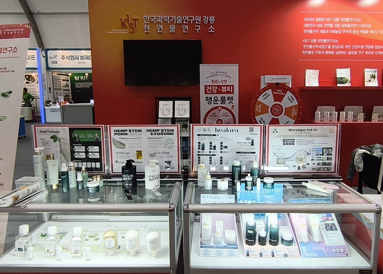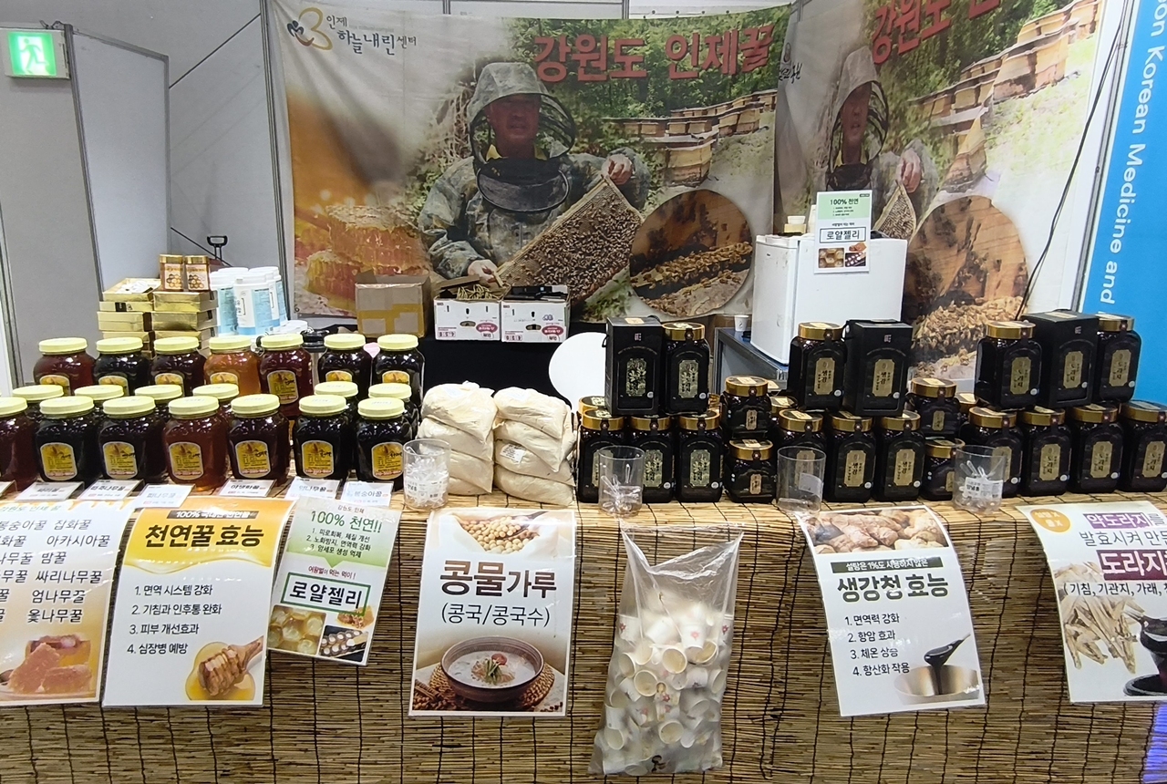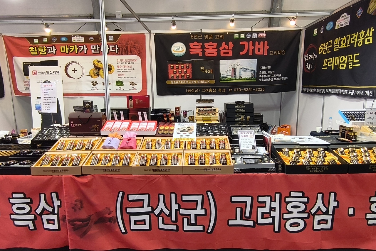 산업관에는 주로 국내 업체들의 다양한 건강 식품 화장품 건강 보조 기구 들이 전시 판매되고 있었다.