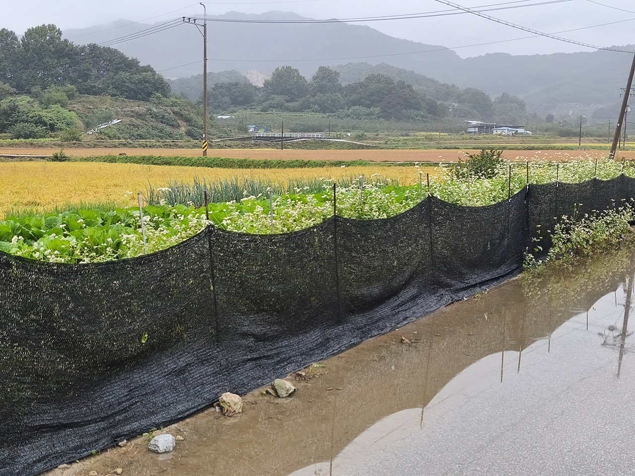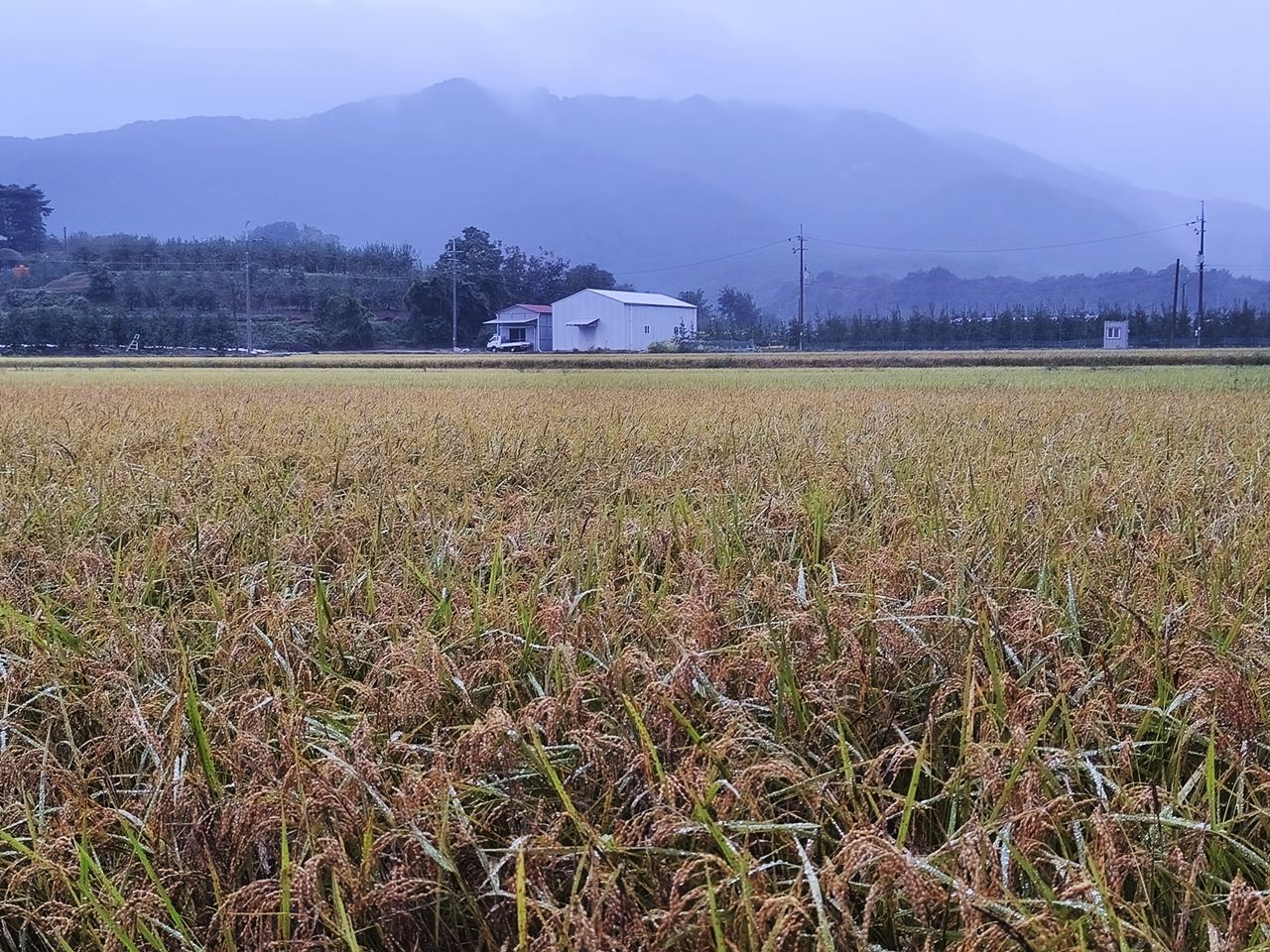 벼 들이 검게 병들어 이렇게 되면 수확을 할수가 없어 보상 관계로 면에서 조사를 나왔다고 한다