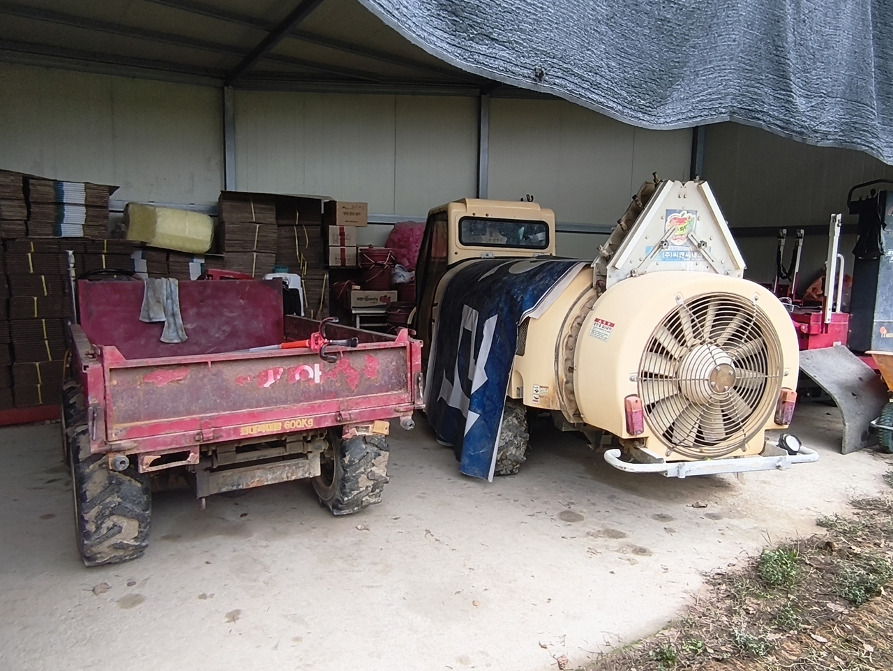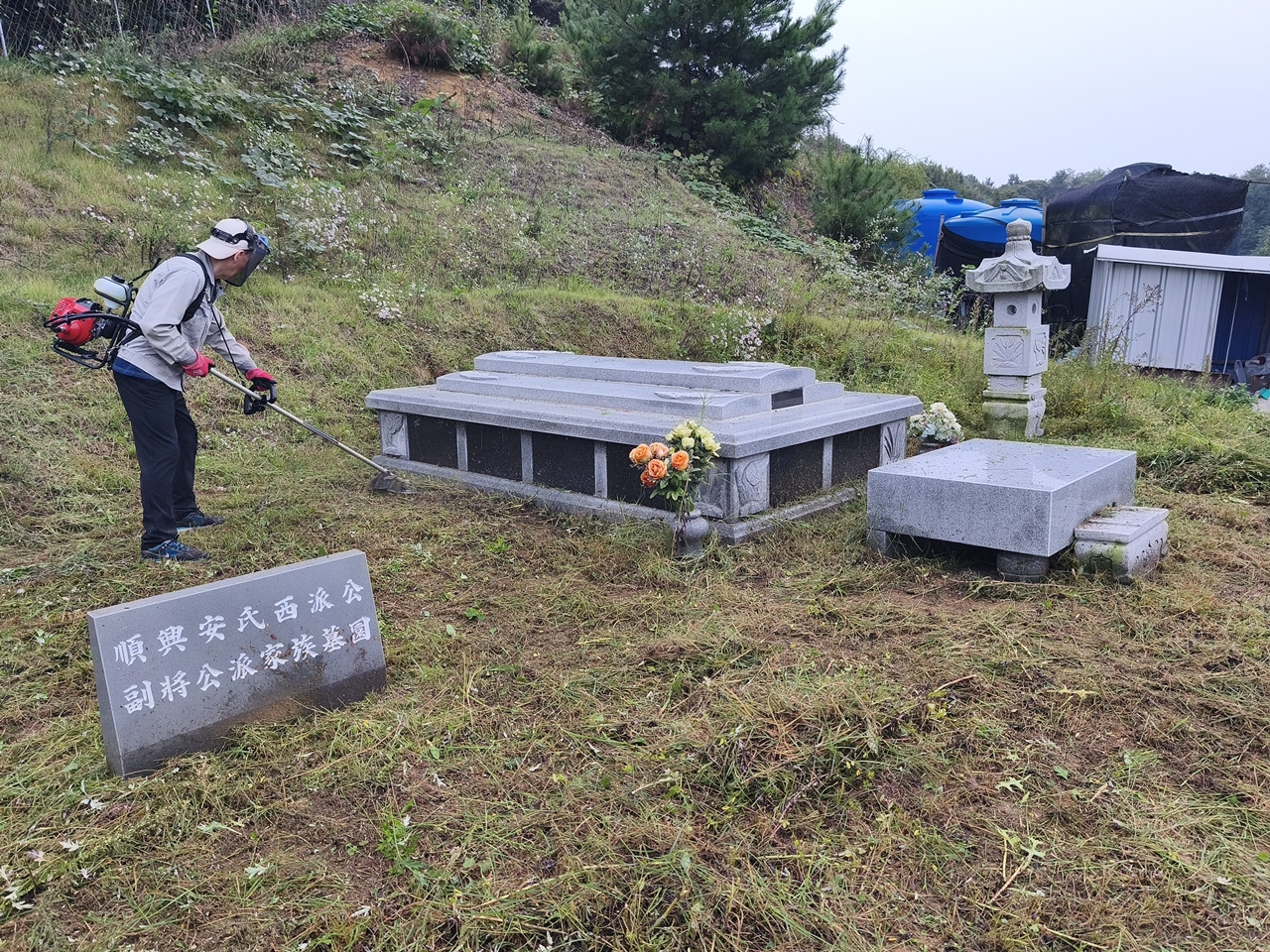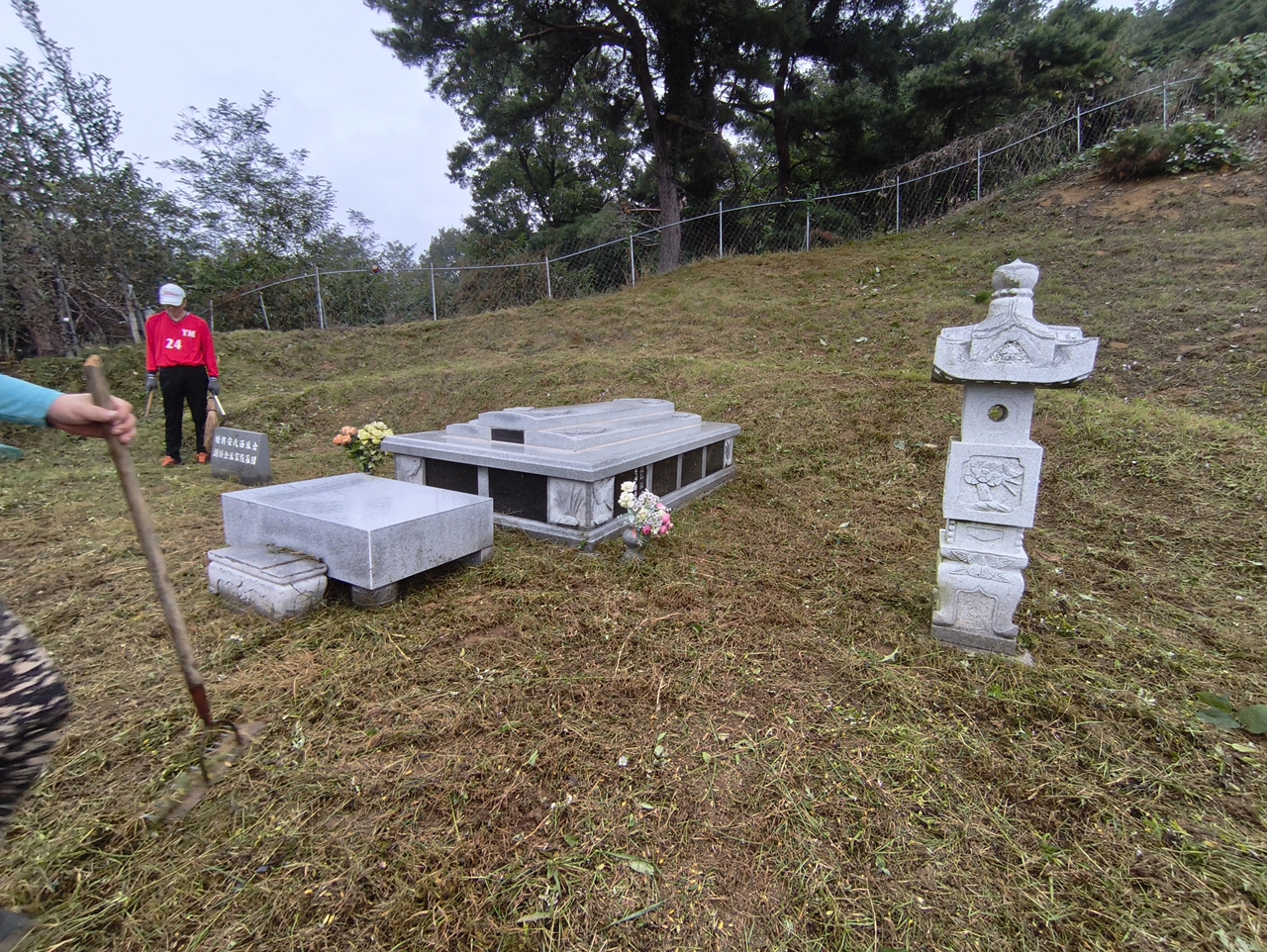 하늘농원은 장족하가 귀농해서 오래전부터 형님이 하시던 과수원을 모두 갈아엎고 신품종으로 바꾸면서 몇 년 전부터 수확을 하고 있는 과수원이다. 지금도 일부는 새로운 신품종으로 접목하고 있는 중이며 일부는 수확이 끝나고 지금 나무에는 부사가 익어 가고 있는 중이다. 농원 뒤편에 있는 가족묘원에 는 잔디는 잡초에 가려 무성하기만 하다 족하들이 벌초를 하느라 수고를 하고 있다.