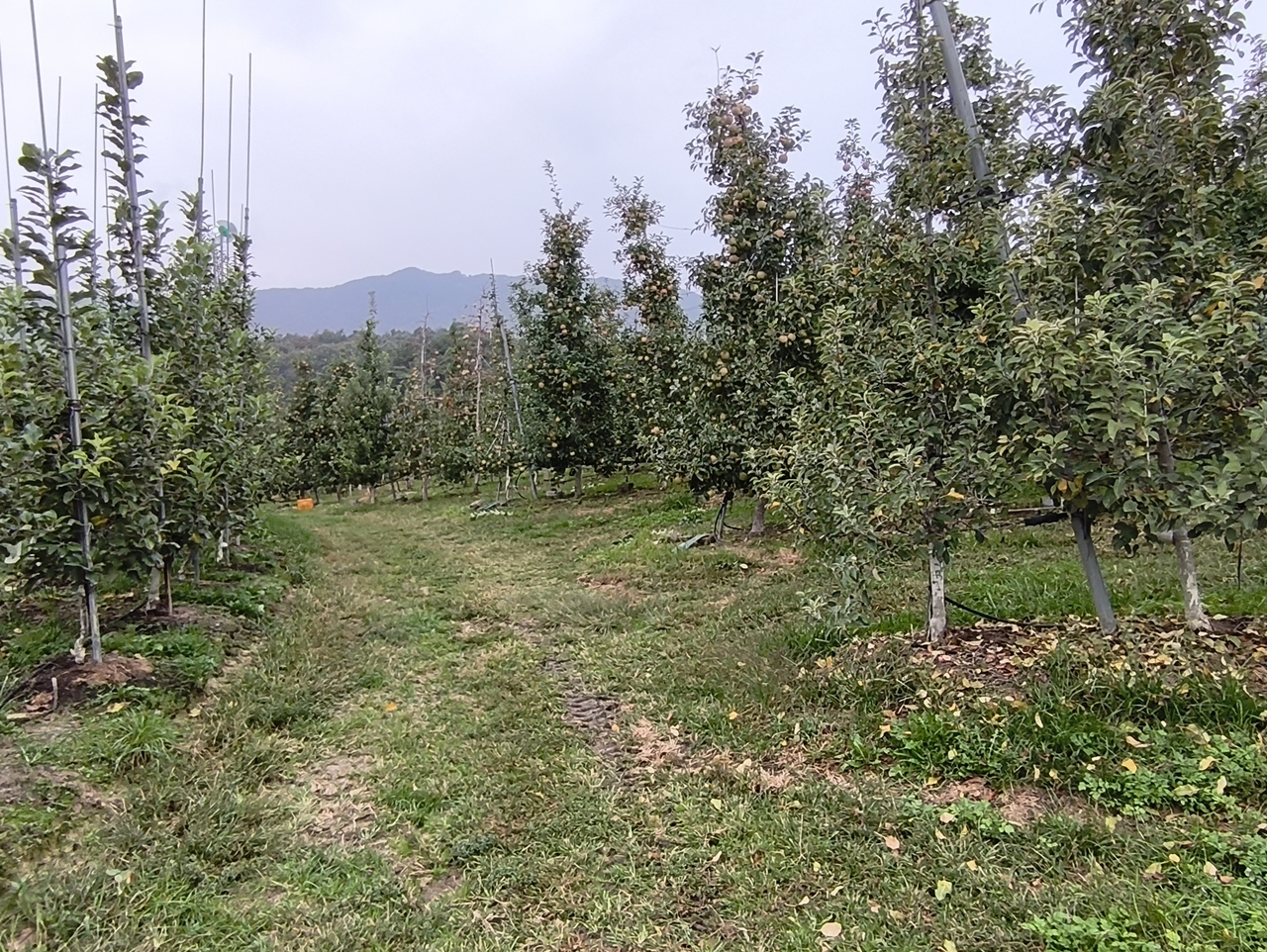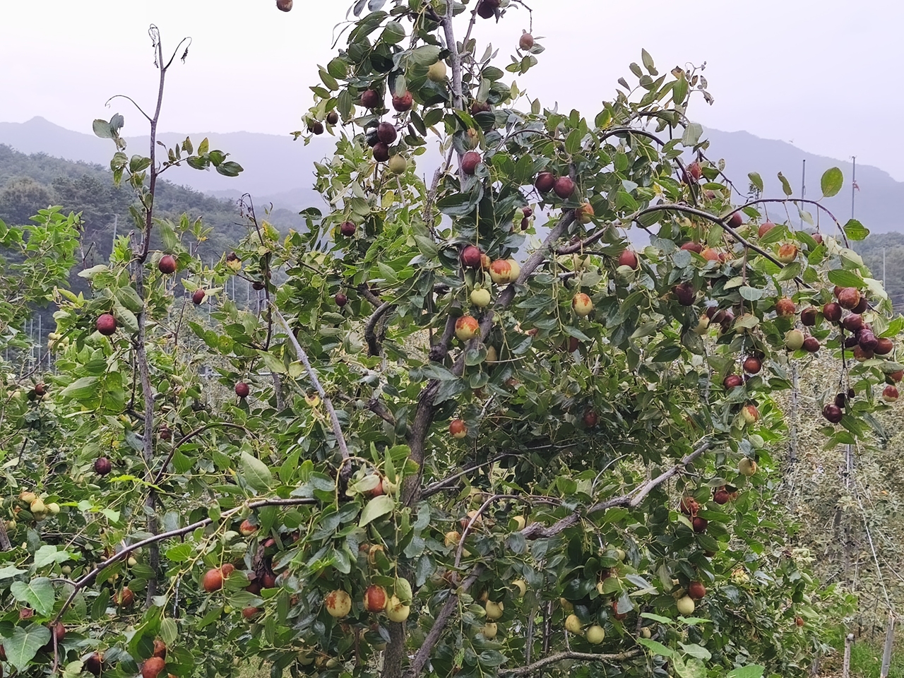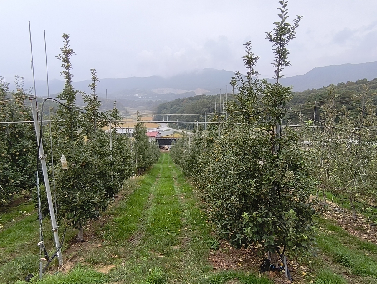 멀리서 바라본 하늘농원 전경 여러 품종의 사과나무들이 1,200주나 된다고