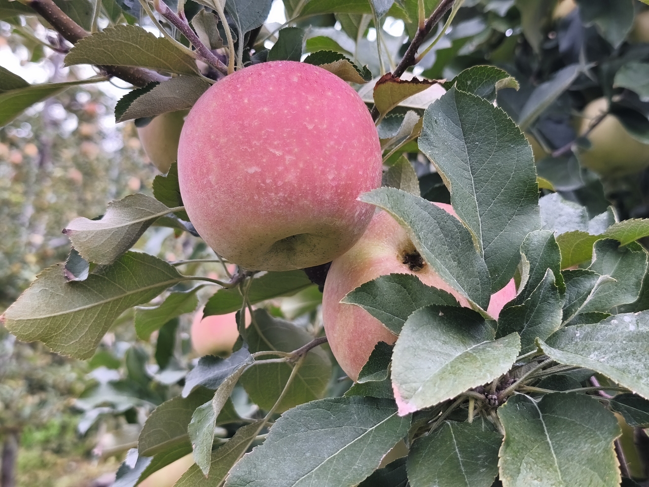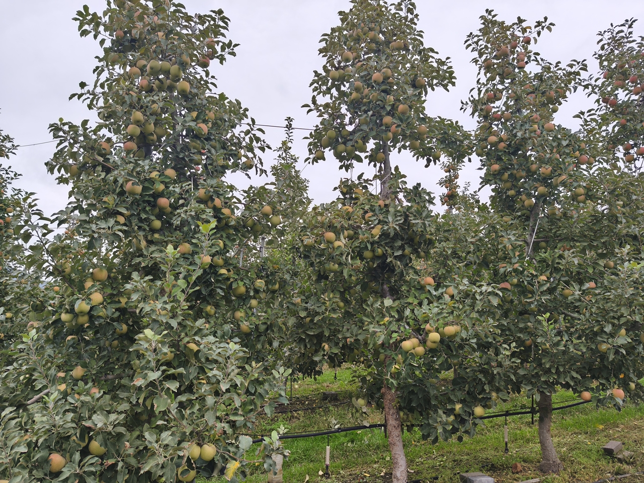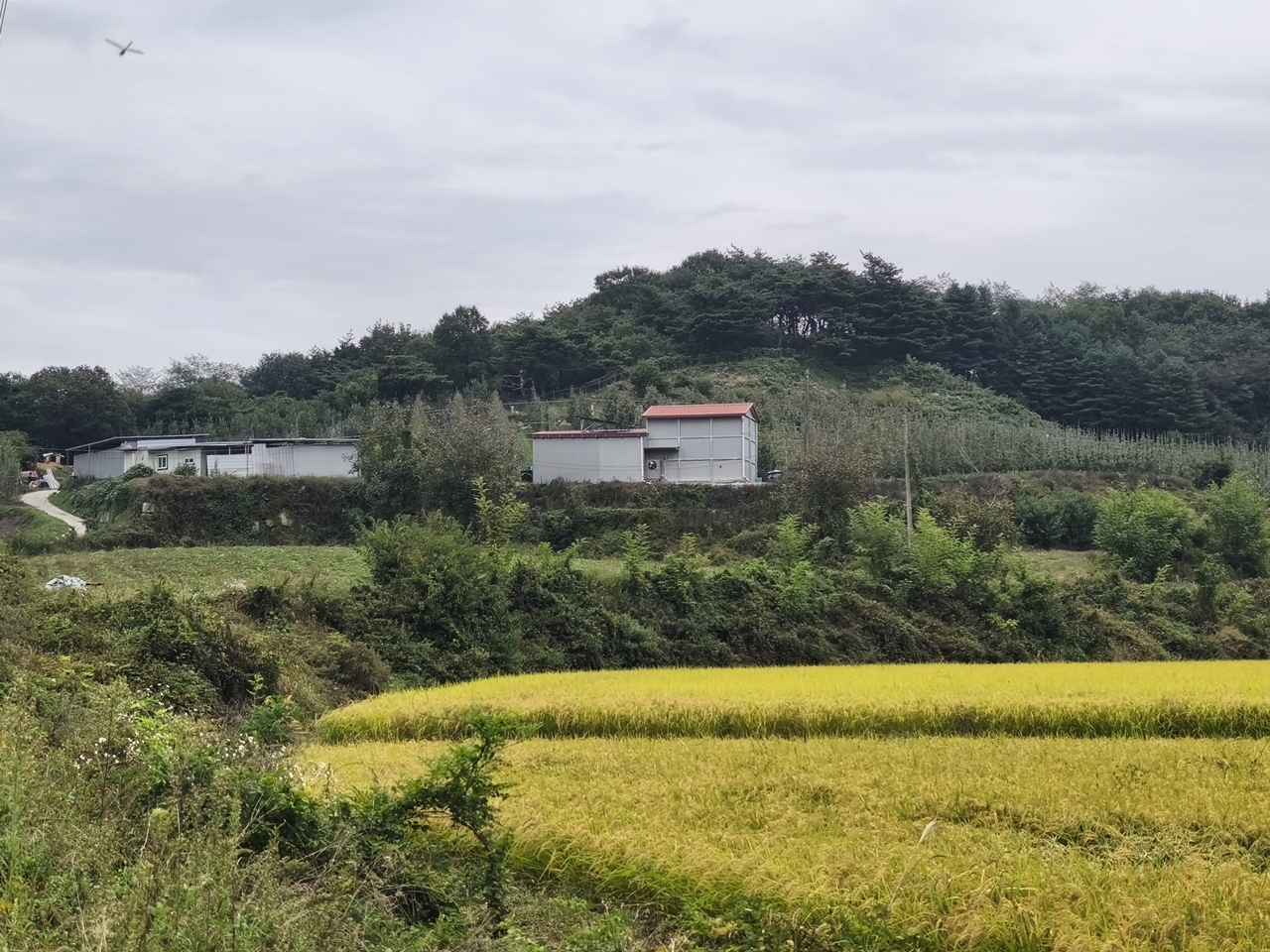 멀리서 바라본 하늘농원 전경 여러 품종의 사과나무들이 1,200주나 된다고