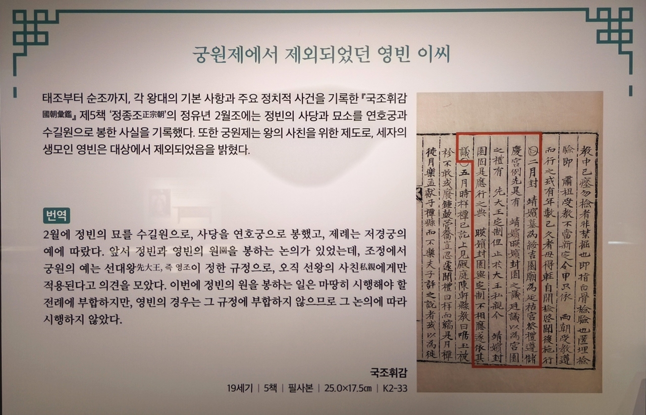 한국학중앙연구원 장서각에서 전시되고 있는 왕의 어머니가 된 일곱 후궁 전시회를 보려고 장서각 전시장을 관람하면서 후궁이면서 왕의 어머니가 된 일곱 후궁들의 역사를 기록한 문헌들을 올려본다.