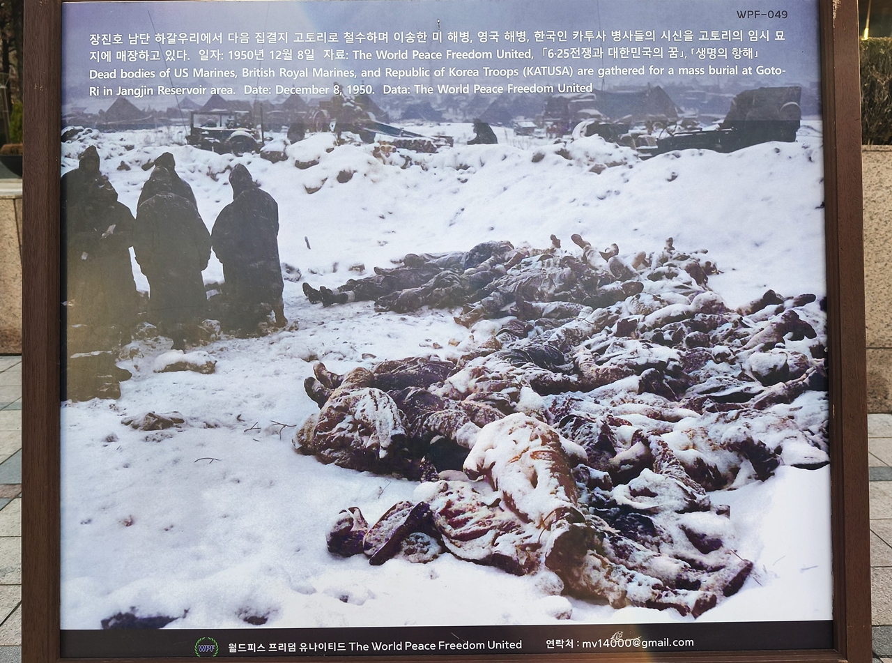 광화문에서 시청 쪽으로 가는 길에 6,25 한국전쟁 사진전이 전시되고 있기에 어린 시절 고향에서 겪어야 했던 그 시절을 생각하며 잠시 걸음을 멈추고 전쟁의 참상을 알리고 희생자들을 기리는 전쟁의 아픈 상처들의 참혹했던 상황과 군인들의 희생을 담고 있는 빛바랜 사진들을 아픈 마음으로 바라본다.