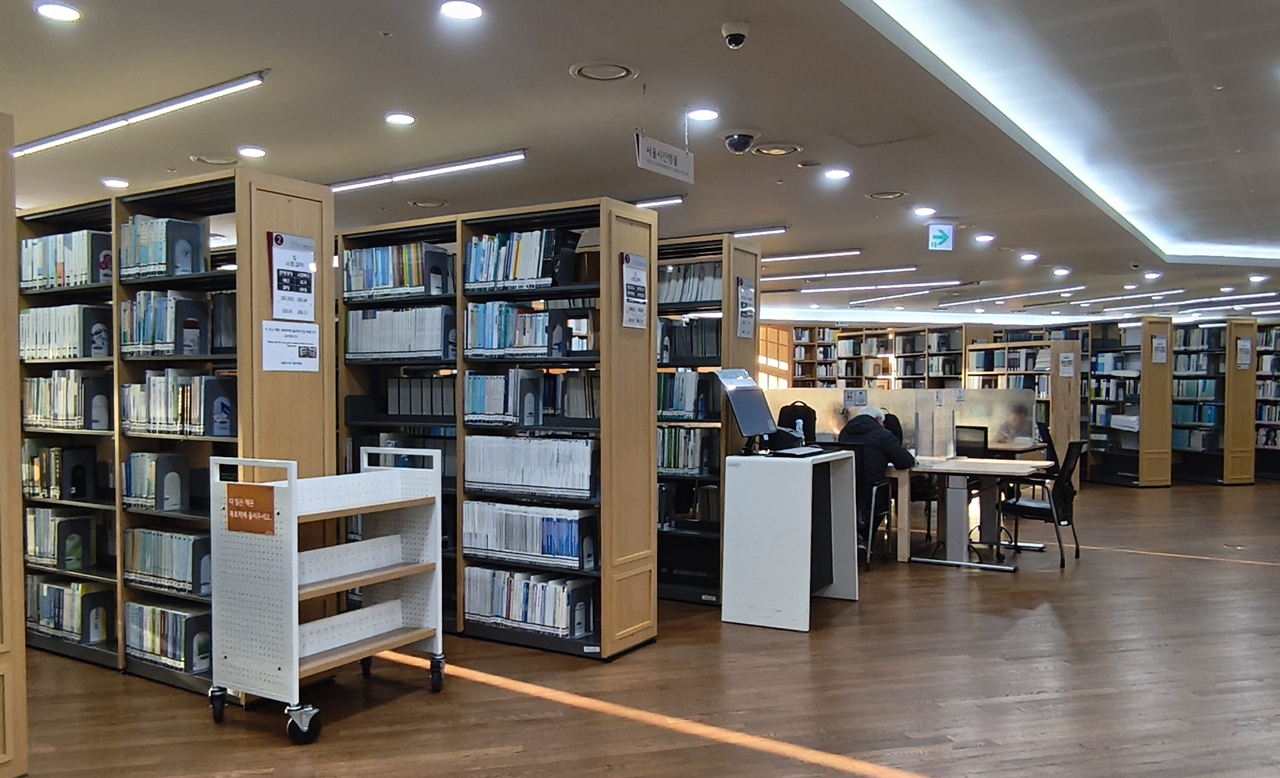서울도서관은 서울특별시청 본관 건물을 리모델링하여 2012년에 개관한 서울도서관을 들려본다 총면적 1만 8711평방 메터의 지상 4층 건물로 일반자료실 장애인자료실 서울자료실 세계자료실 디지털자료실 정기간행물실 기획전시실 등을 갖추고 있으며 약 20만 권의 장서를 보유하고 있다. 서울도서관 누리집에서 회원가입 후 구비서류를 지참하여 방문받거나 비대면 자격 확인 후 절차를 통해 온라인으로 발급받을 수 있다. 많은 사람들이 실내에서 열람과 독서를 하고 있는 모습을 볼 수 있었다.